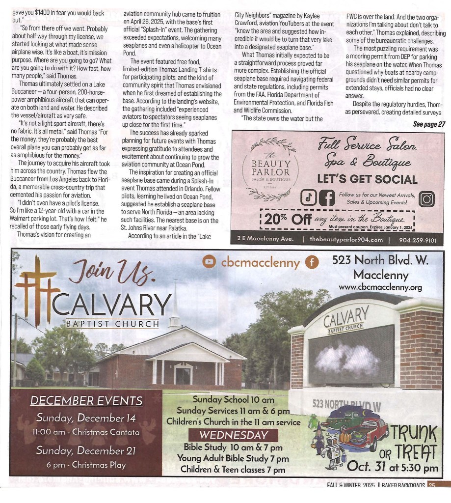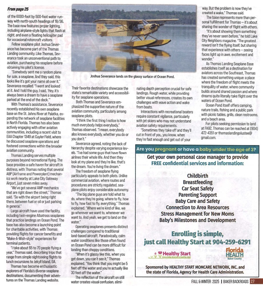 We are honored to have Thomas Landing Seaplane Base featured in the Fall/Winter 2025 issue of Baker Backroads Magazine!